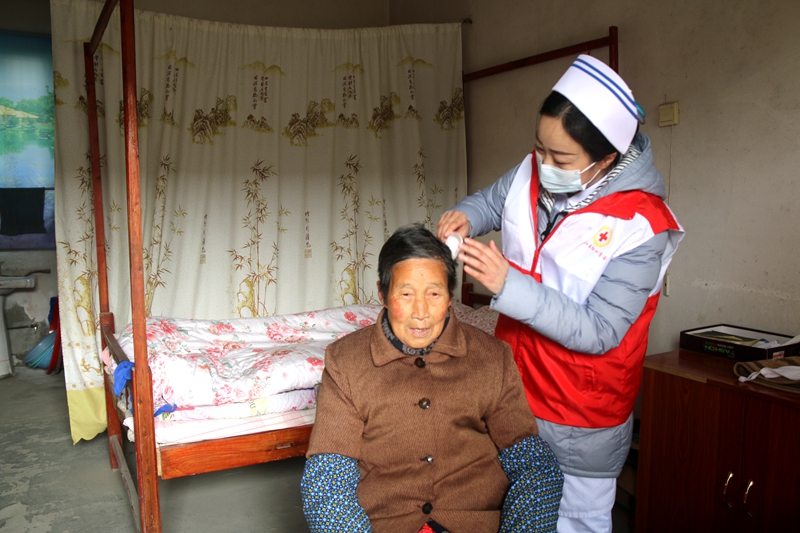 1月13日,红十字会望江县医院南丁格尔志愿护理服务队赴华阳镇养老院开展“我为群众办实事”志愿服务活动。县红十字会相关领导全程参与。参加本次志愿服务活动的志愿者由日前竞聘成功的相关科室新护士长组成。在活动现场,志愿者们为老人们测量血压、血糖,询问身体情况,普及健康知识。对高血压、高血糖的老人,他们将检查结果记录下来,叮嘱老人注意事项及用药知识。志愿者们还来到老人们的房间,为他们铺床擦桌,打扫卫生,为他们进行剪指甲、梳头等生活护理。志愿者们还自筹资金为老人们买来牛奶、水果及各种食品。