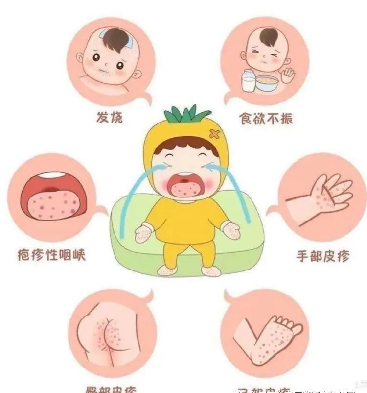 手足口病是由多种肠道病毒感染引起的一种常见的儿童传染病。手足口病病人和隐性感染者均为传染源,主要通过消化道、呼吸道和密切接触等途径传播。主要症状表现为手、足、口腔等部位的斑丘疹、疱疹,少数重症病例可出现脑膜炎、脑炎、脑脊髓炎、肺水肿、循环障碍等。