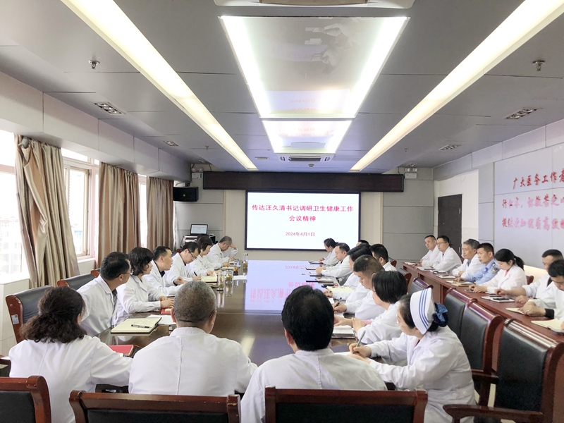 4月1日下午,县医院召开专题会议,传达学习县委书记汪久清调研卫生健康系统工作会议精神,院领导班子和各职能部门负责同志参加会议。