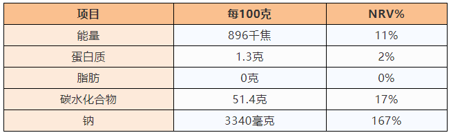 从这份配料表和营养成分表中,大家应该可以一眼揪出“果葡糖浆”和“蜂蜜”两个“添加糖”吧!原来我们不是在吃酸酸的话梅,而是在吃糖,同时摄入了很多能量。除此之外,它的钠含量非常高,一不小心钠就超标了!这款食物非但营养价值不高,还隐患多多。