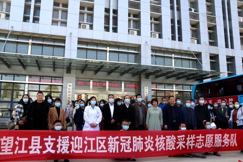 3月8日,按上级部门要求,我院迅速召集志愿者,加入县志愿服务队,赴安庆市迎江区支援核酸采样工作。本次我县支援安庆迎江区核酸采样志愿服务队共200人,来自县直各医疗卫生单位。副县长储爱星、县卫健委主要负责人、县直各医疗单位负责同志到现场送行。