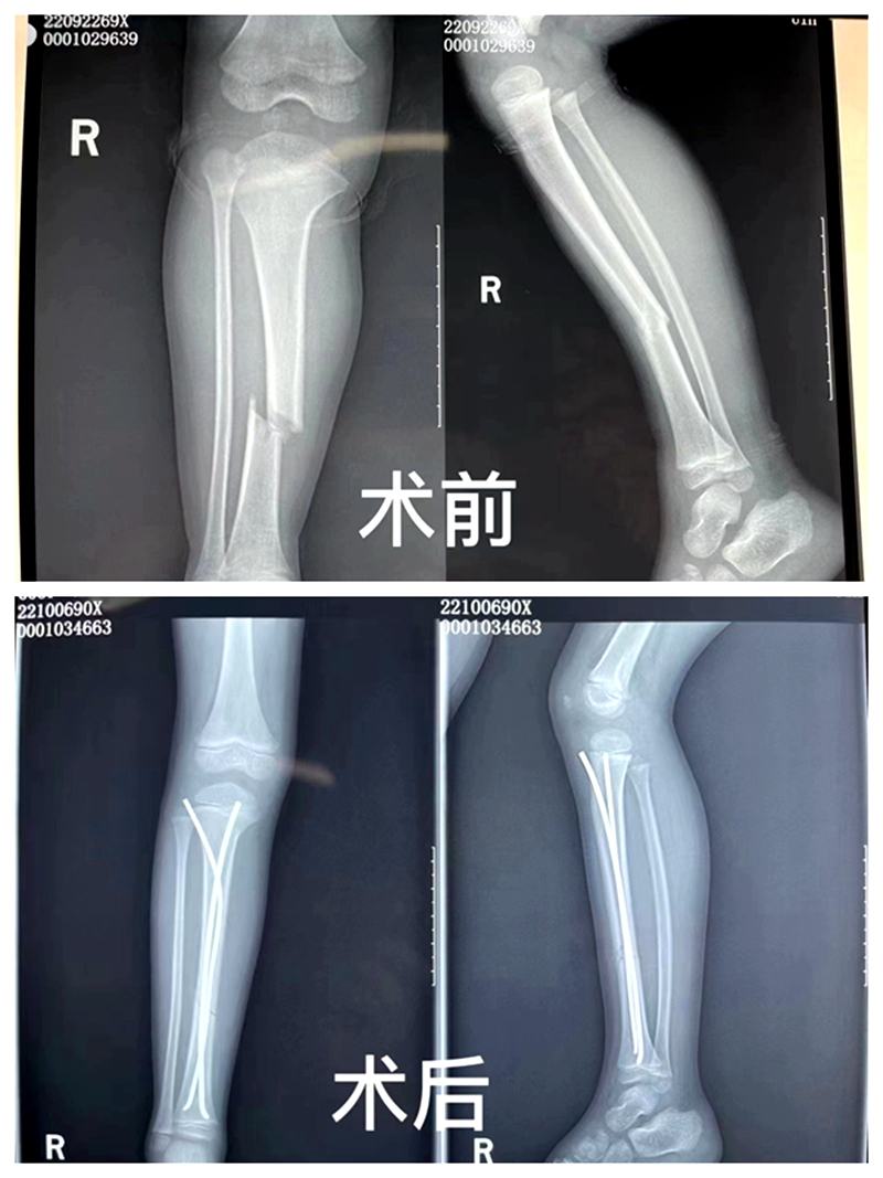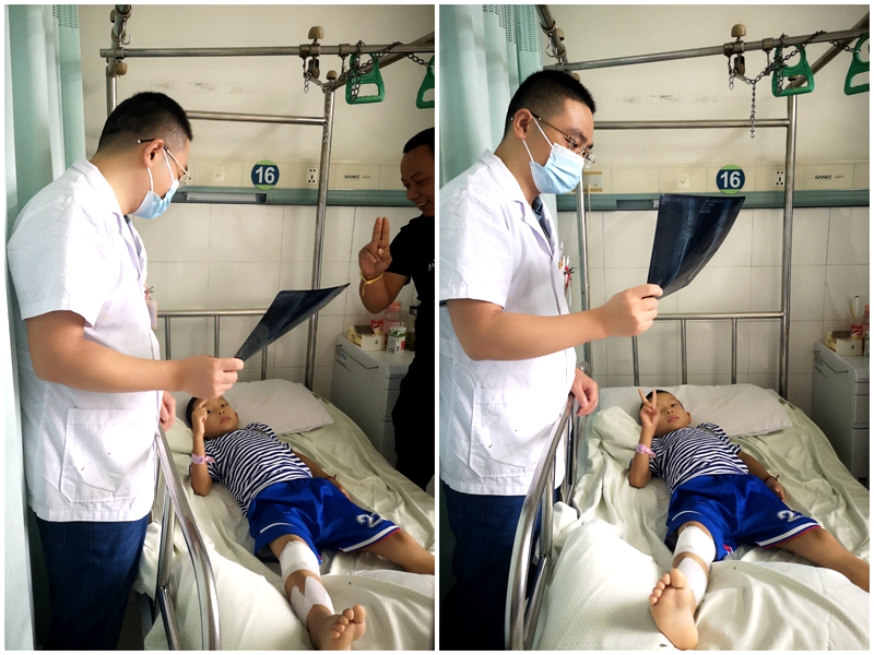 家住杨湾余埠村的8岁小朋友,摔伤致右小腿肿痛畸形,活动受限,急诊入住我院骨一科。