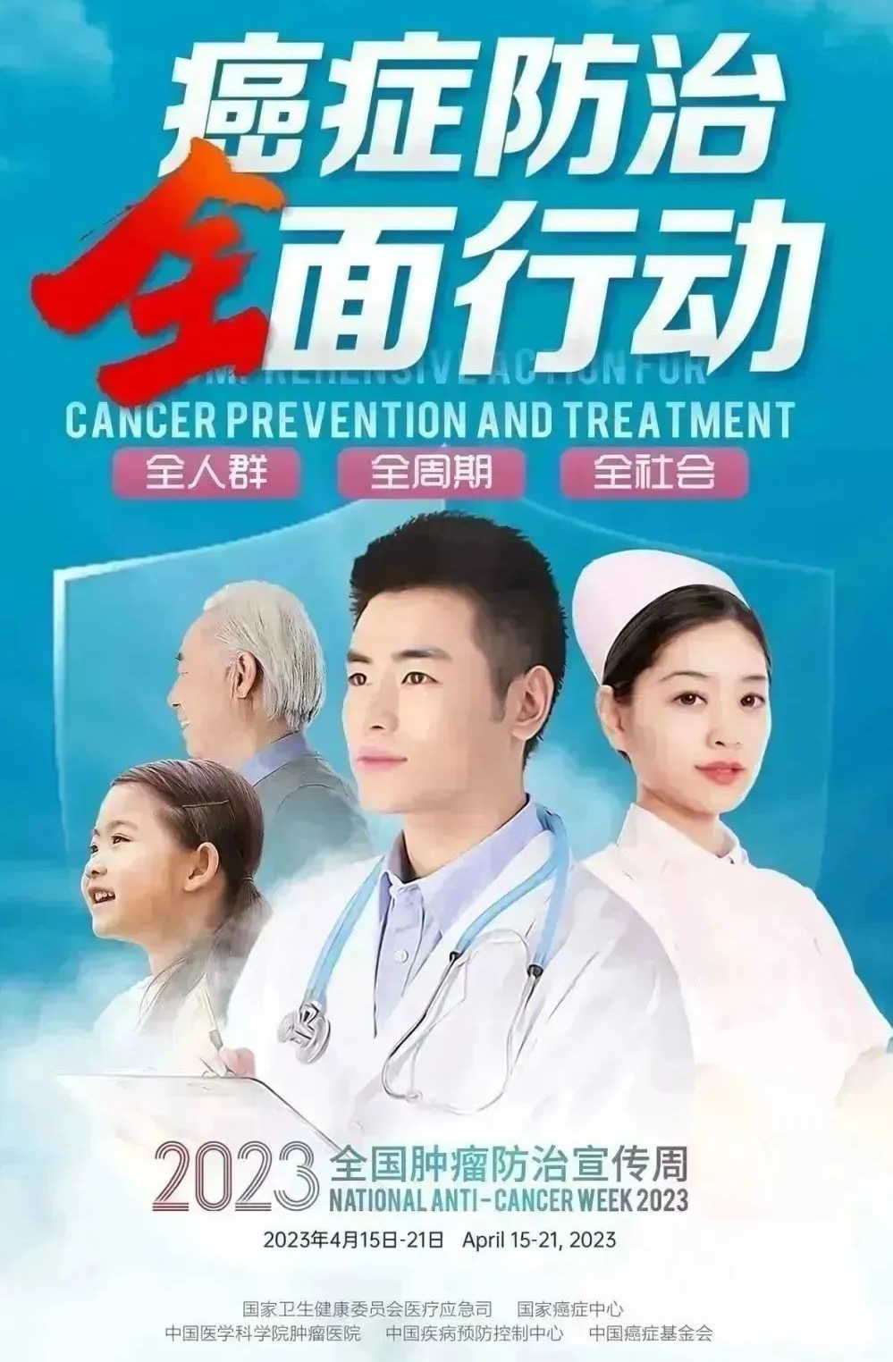 2023年4月15日-21日是第29个“全国肿瘤防治宣传周”,今年宣传主题是“癌症防治 全面行动——全人群 全周期 全社会”,旨在积极倡导每个人做自己健康的第一责任人,正确认识癌症、积极防控癌症,贯彻癌症三级预防原则,践行健康文明的生活方式,主动参加防癌健康体检,做到早预防、早发现、早诊断、早治疗。