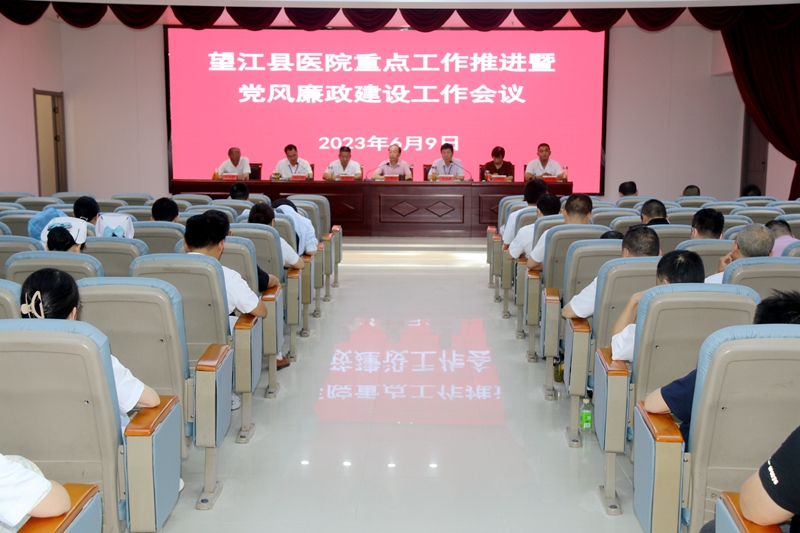 6月9日,县医院召开重点工作推进暨党风廉政建设工作会,院领导班子成员、全体党员、各大小科室负责人、非当班临床医生,及医共体成员单位负责人参加会议,会议由党委书记沈哲义主持。